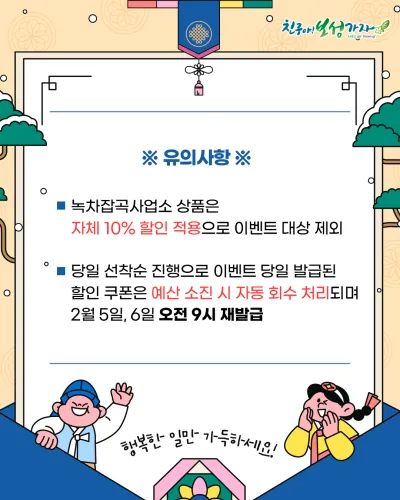 ※ 녹차잡곡사업소 상품은 자체 10% 할인 적용으로 이벤트 대상 제외