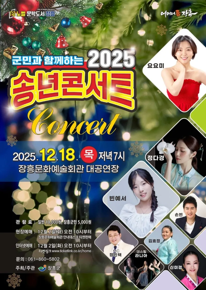 #장흥군 #송년콘서트 #2025송년공연 #장흥문화예술회관 #요요미 #정다경 #빈예서 #군민과함께 #겨울공연 #장흥이벤트