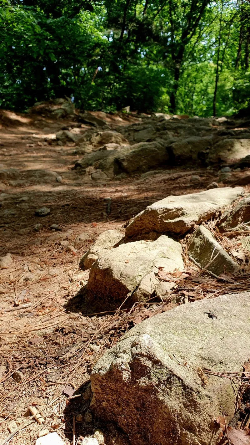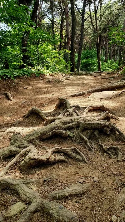 원래 자연을 그대로 유지하기 위함도 있겠고요, 뿌리나 호박돌이 미끄럼 방지 역할을 하기 때문이기도 할 겁니다.