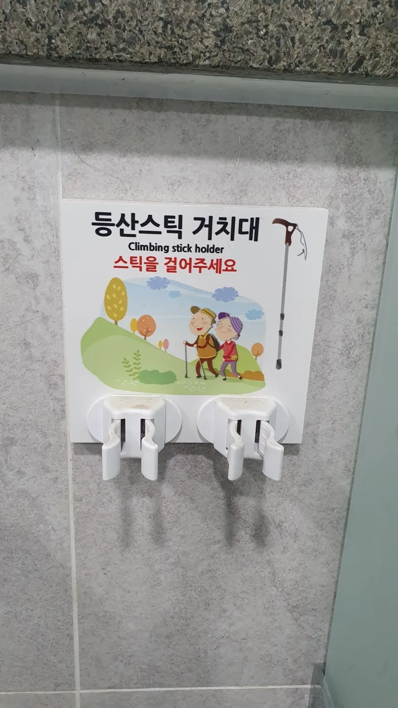 화장실에는 등산 스틱을 거치대까지 있는데요,