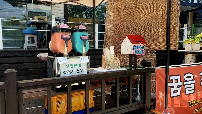 슬러시 무인가판대는 서봉산을 내려와 로컬푸드직매장으로 들어가는 길에 있는데요, 꽤 오래된 곳입니다.