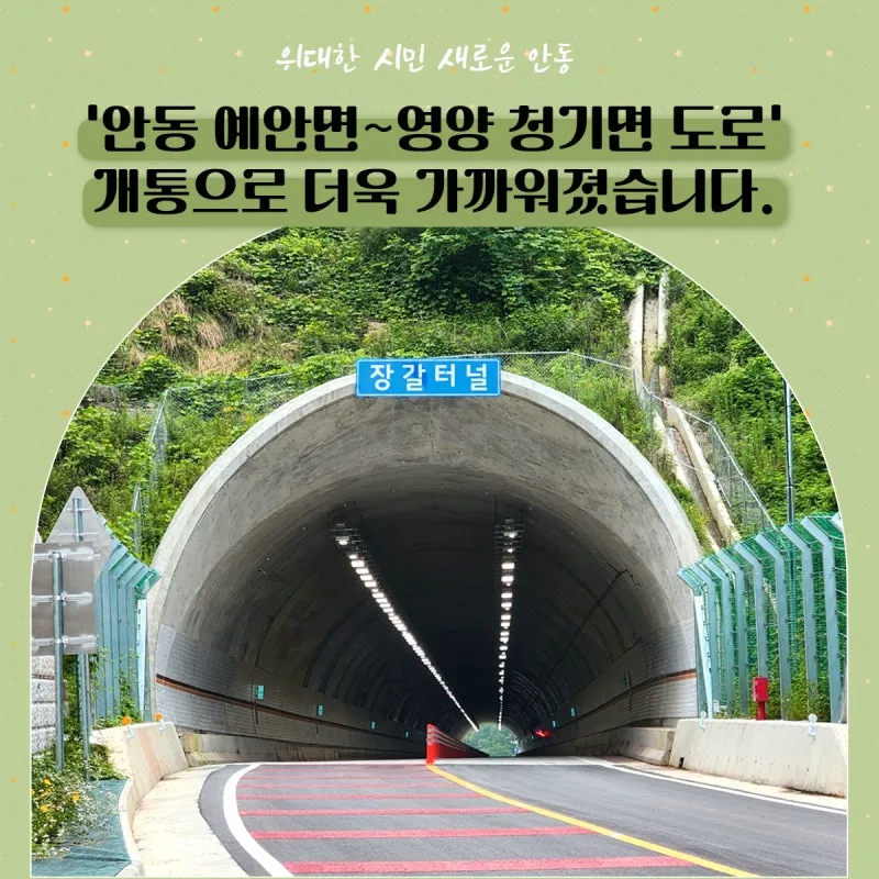 안동시와 영양군이 '안동 예안면~영양 청기면 도로' 개통으로 더욱 가까워졌습니다.