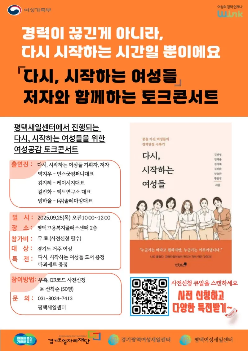 행사명 : 2025년 「다시, 시작하는 여성들」 저자와 함께하는 토크콘서트