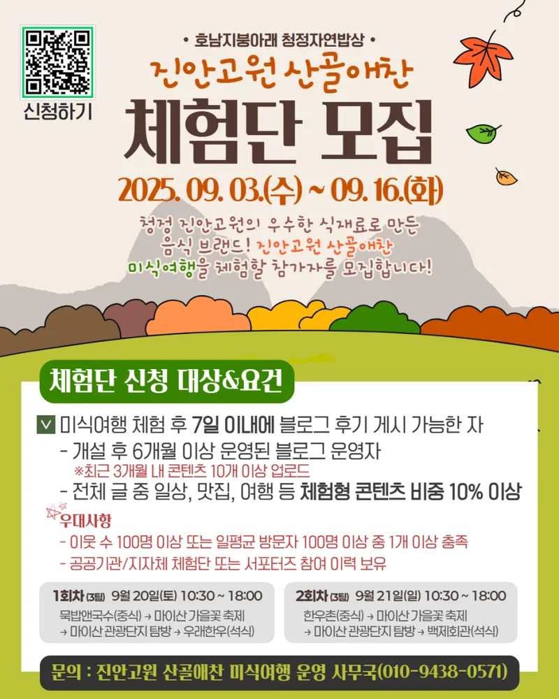 진안고원 산골애찬 미식여행 체험단 참가자 모집