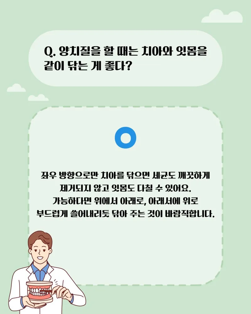 ❓ 양치질을 할 때는 치아와 잇몸을 같이 닦는 게 좋다