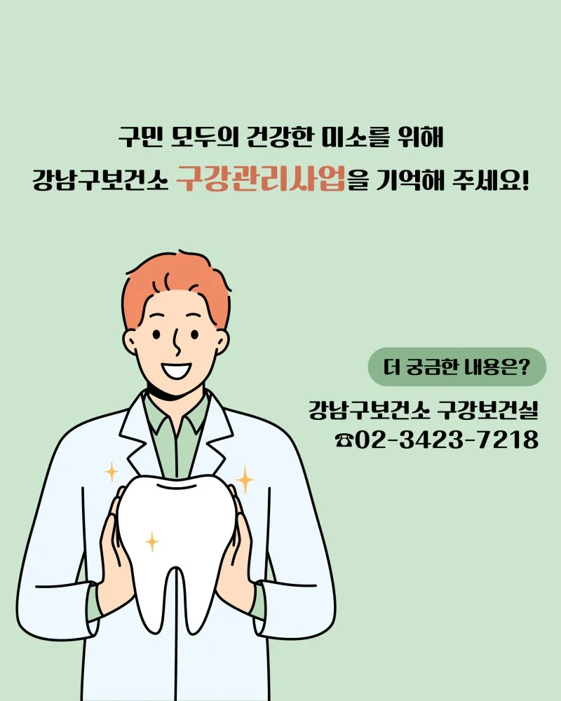 구민 모두의 건강한 미소😁를 위해 강남구보건소 구강관리사업🦷을 기억해 주세요!