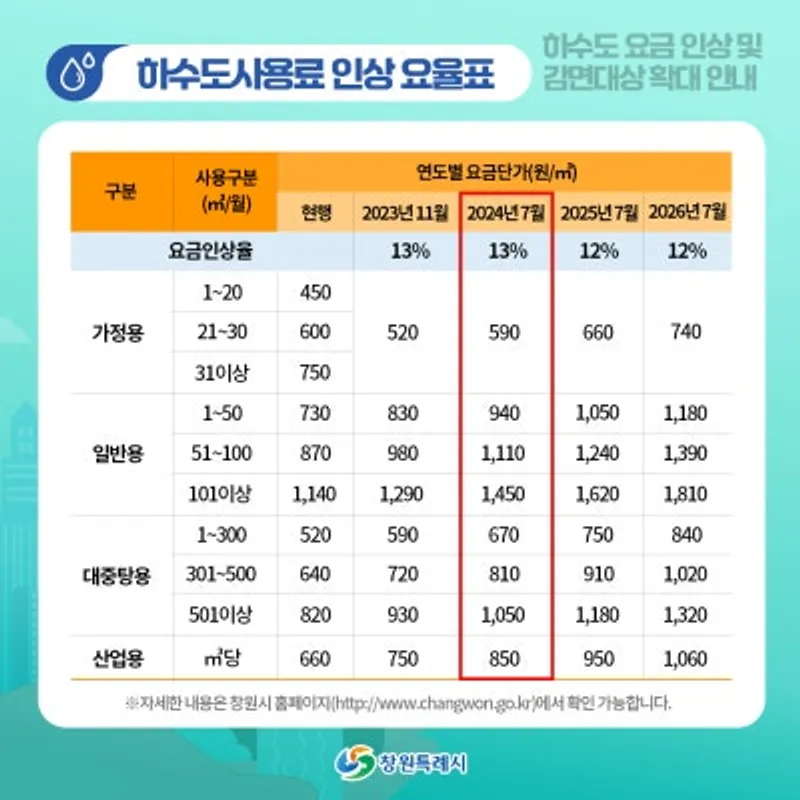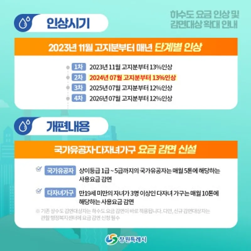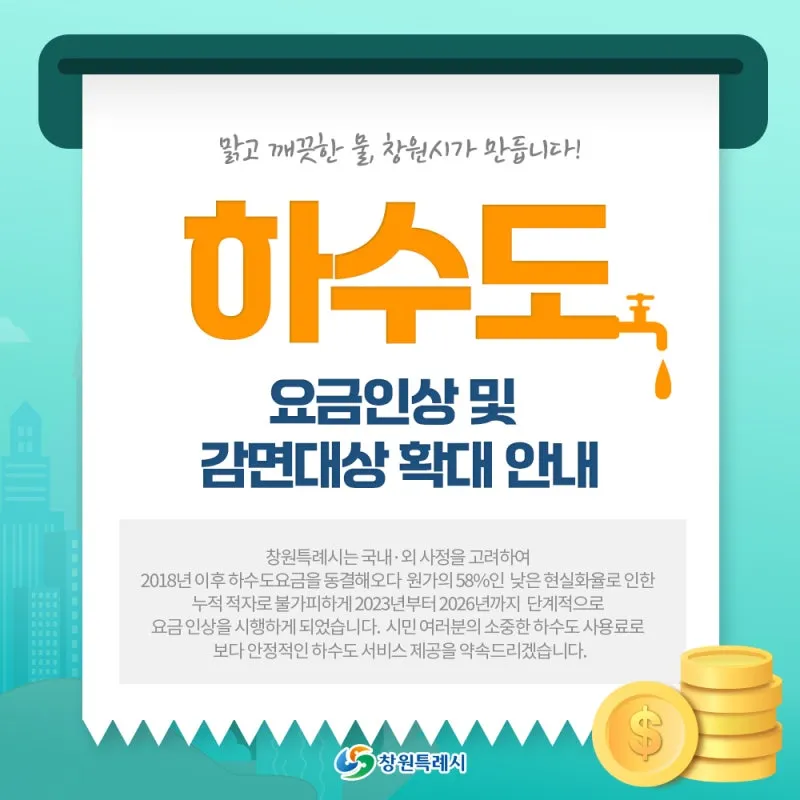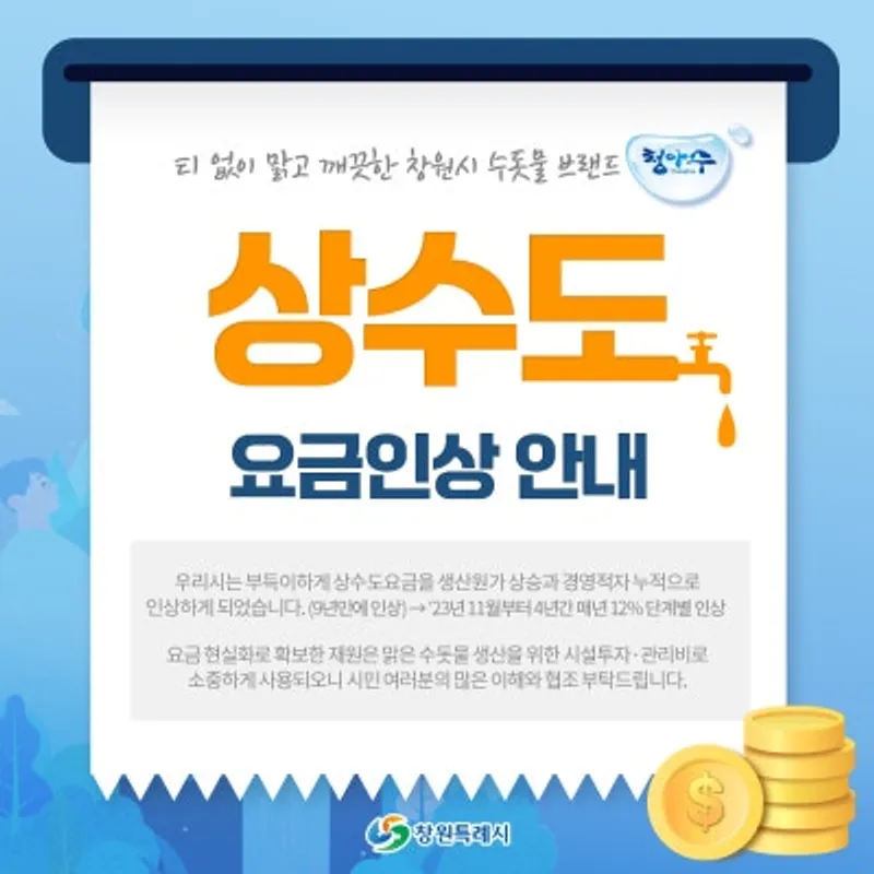 #창원 #창원시 #창원특례시 #창원물 #상수도 #하수도 #요금인상 #물사용요금 #청아수 #요금감면
