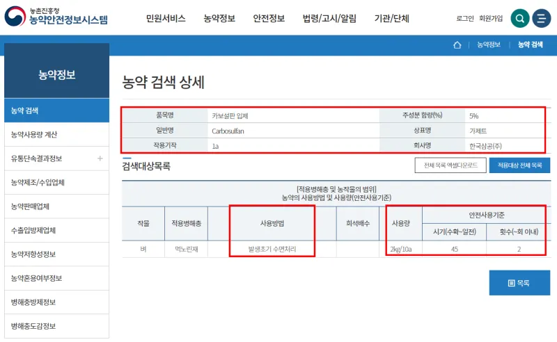 출처 : 농촌진흥청 농약안전정보시스템