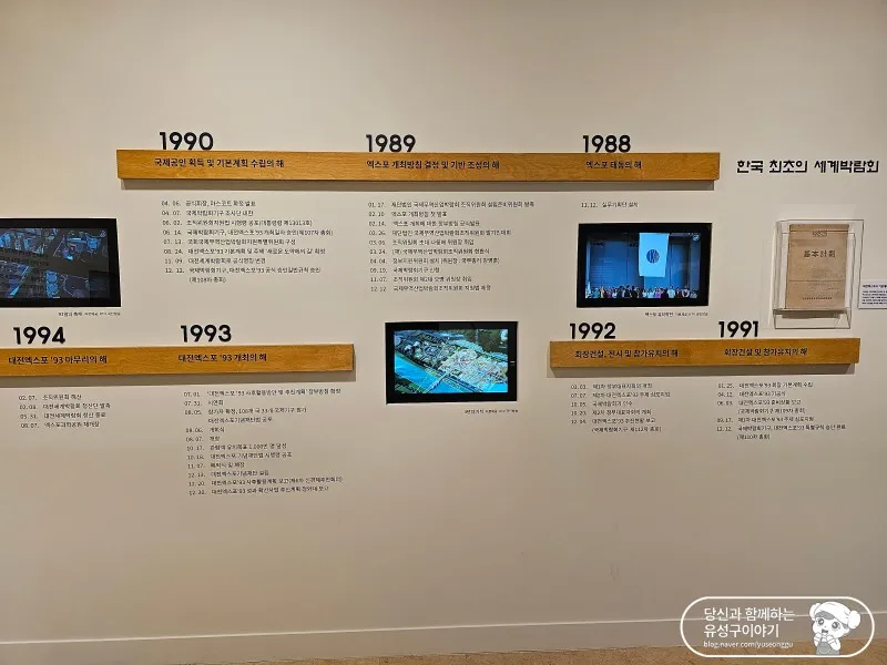 꿈돌이가 반갑게 맞이해주는 30년의 기억, 대전엑스포'93의 입구를 지나면 세계박람회(EXPO)의 의미에 대해서 알 수 있습니다. 이번 기회를 통해서 좀 더 정확하게 의미를 이해하고 '세계박람회'라는 단어를 구사할 수 있을 것 같습니다.