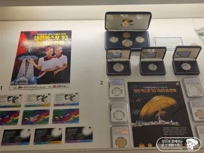 자연스럽게 추억을 소환하는 다양한 기념품도 만나볼 수 있습니다. 공중전화카드는 물론, 기념주화와 각종 배지 등을 관람하며 30년 전 그날로 돌아가서 추억여행을 하다 보면 소중한 기억이 새록새록 떠오르는 기분이 들었습니다.