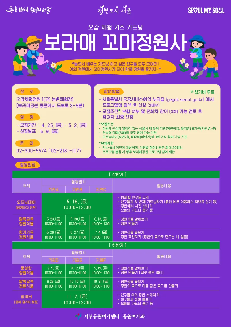 보라매공원 꼬마정원사를 모집합니다~ 서울 어린이집·유치원 대상 가드닝 프로그램 운영(5/16~11/7)