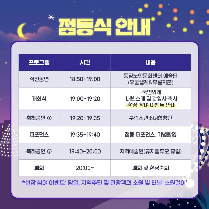 점등퍼포먼스(관계내·외빈 및 구립소년소녀합창단), 기념촬영 |