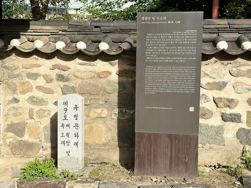 옥오재는 제월당 송규렴의 아들로 이조판서, 대제학 등을 지낸 송상기가 안채에 붙여 지은 사랑채 건물입니다. 조선 시대 양반 가옥의 구조를 살펴볼 수 있는 고택이라 할 수 있습니다.