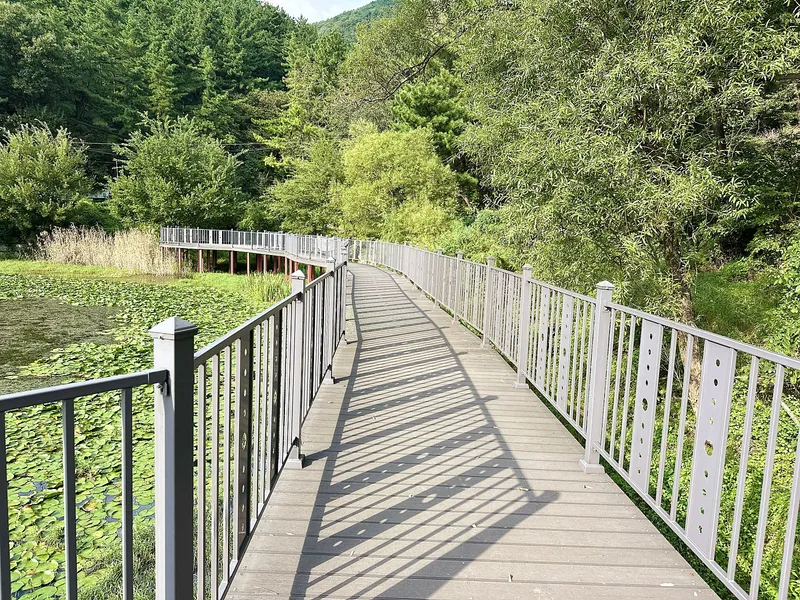 읍내방죽 저수지에는 연꽃잎이 한가득이라서 색다른 분위기를 안겨줍니다. 나무 데크길이 잘 되어 있어서 한 바퀴 돌아도 스트레스가 풀리는 기분이 들고 맑은 공기와 피톤치드를 마시면서 걷기 좋았습니다.