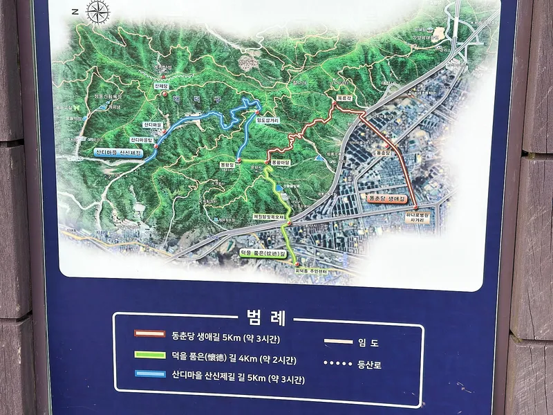 동춘당 생애길과 덕을 품은 길, 산디마을 산신제길와 등산로에 대한 지형도가 있는데 넓고 코스가 긴 편이니까 미리 참고해 주시길 바랍니다.