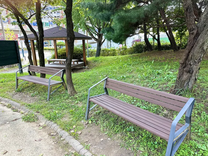 그늘 아래에서 휴식을 취할 수 있는 벤치가 비치되어 있어서 주민분들께서 잠시 쉬었다가 갈 수 있는 곳입니다.