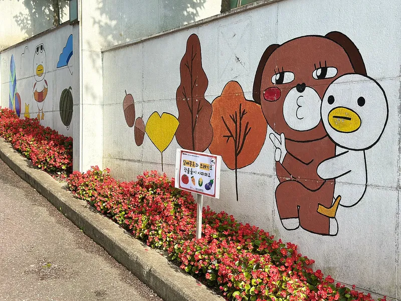 대덕구 캐릭터 벽화 그림을 바라보면서 더 위로 올라갔습니다.