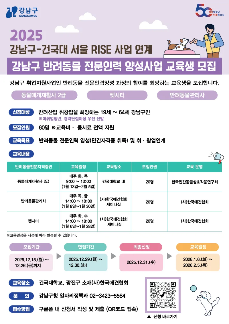 2025 강남구 반려동물 전문인력 교육생 모집
