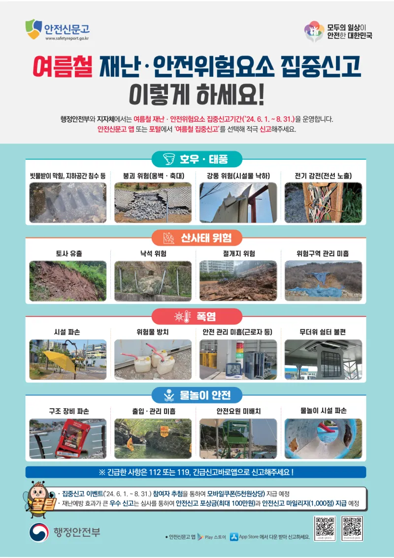 재난·안전사고 예방을 위한 안전위험요인은 '안전신문고'로!