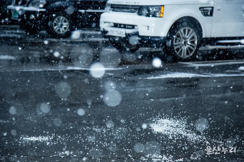 눈이 차량 앞 유리에 튀어 시야를 가릴 수 있으므로 유의하여 운전하기