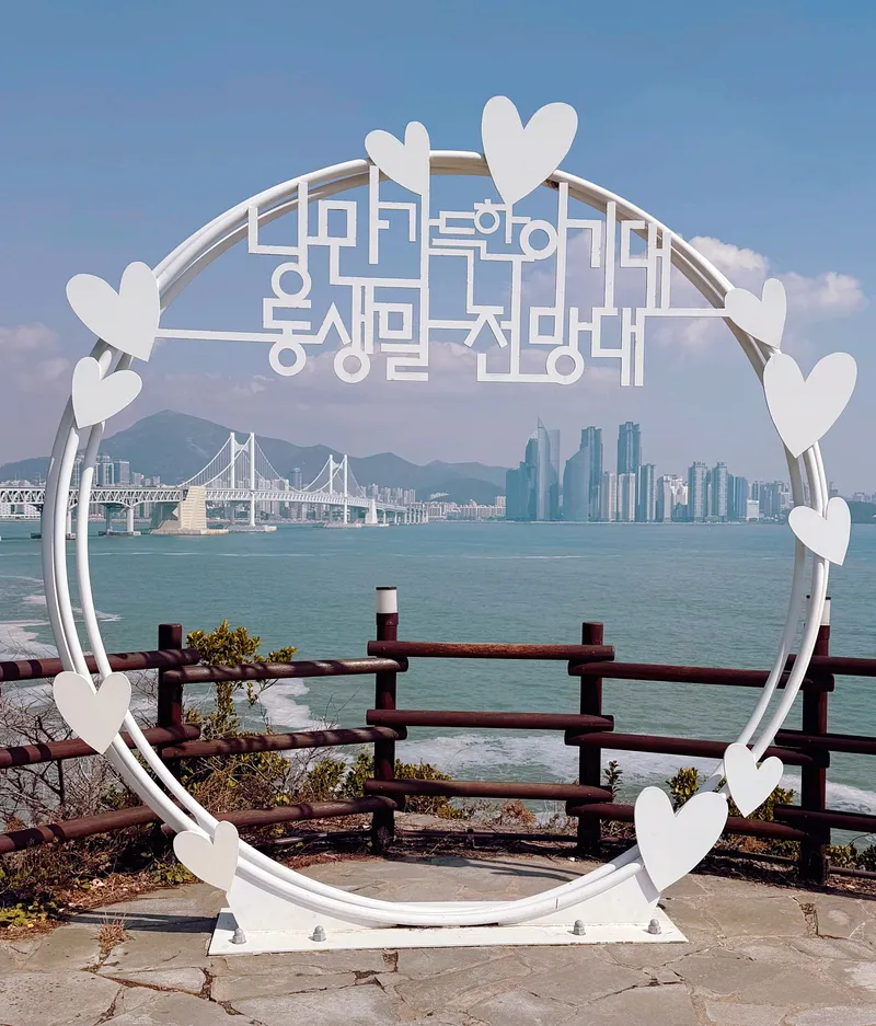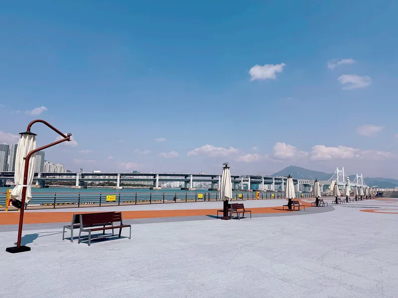 포토존 조형물이 있어 인증샷을 남기기에도 좋고, 벤치가 곳곳에 마련되어 있어 광안대교를 바라보며 여유로운 시간을 보낼 수 있습니다.