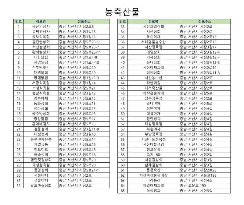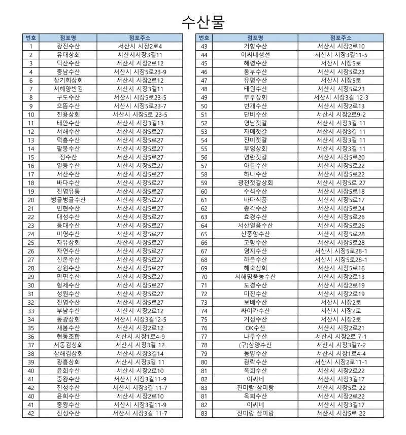 👉서산동부전통시장 행사 참여점포 살펴보기