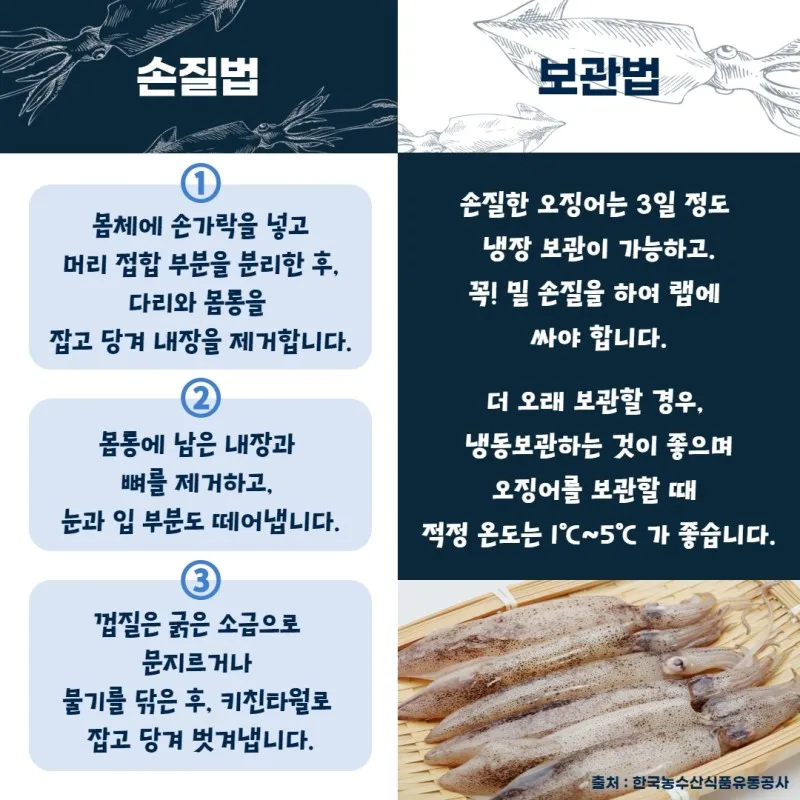 오징어 손질법, 보관법
