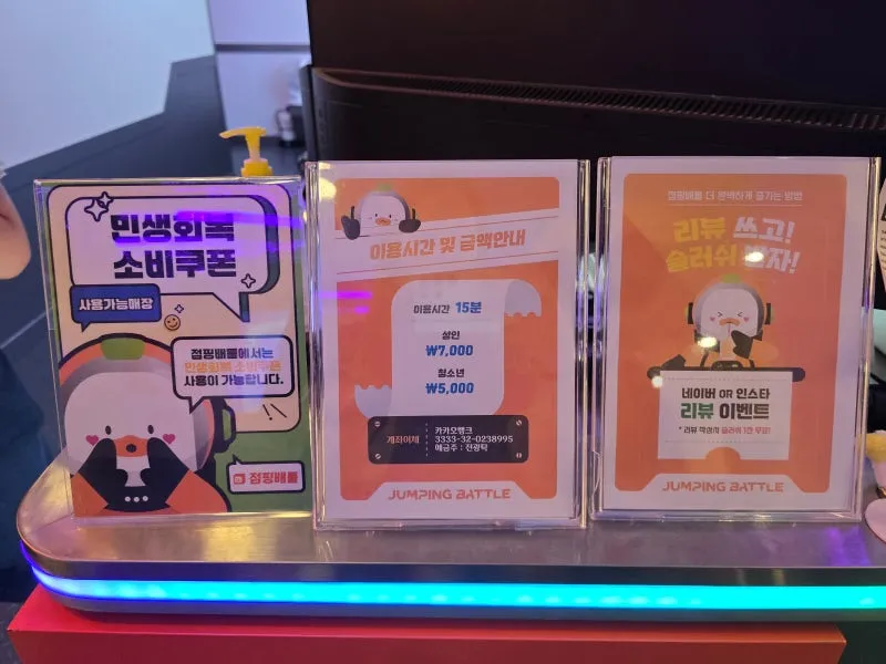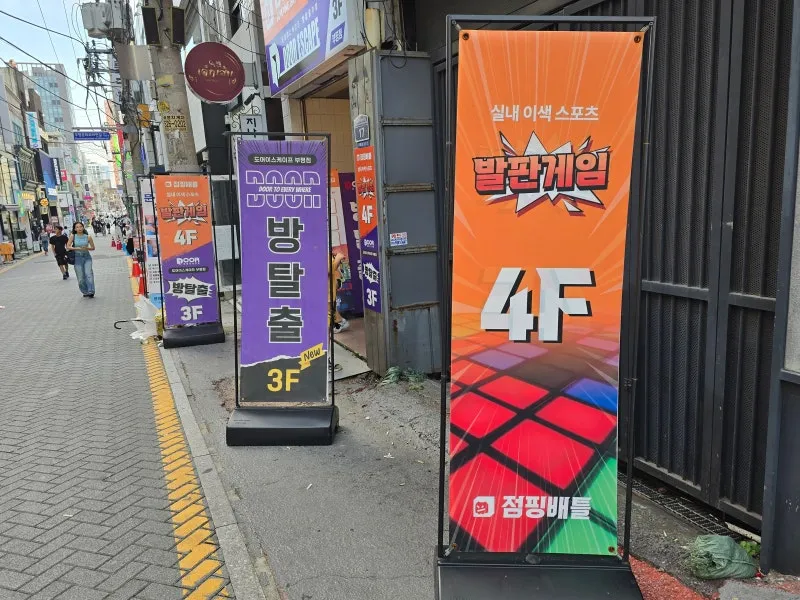 발판 게임 입간판이 반겨줍니다.🚩