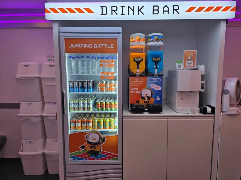 생수, 음료, 슬러시가 판매하고 있습니다.🍹