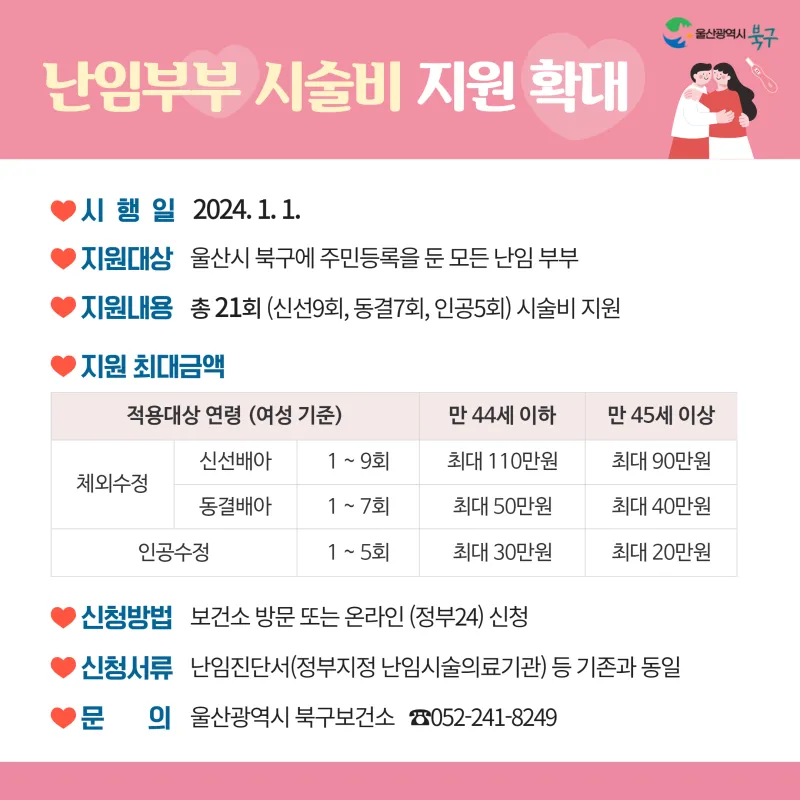 #울산 #울산북구 #출산지원 #난임부부 #난임부부시술비 #지원