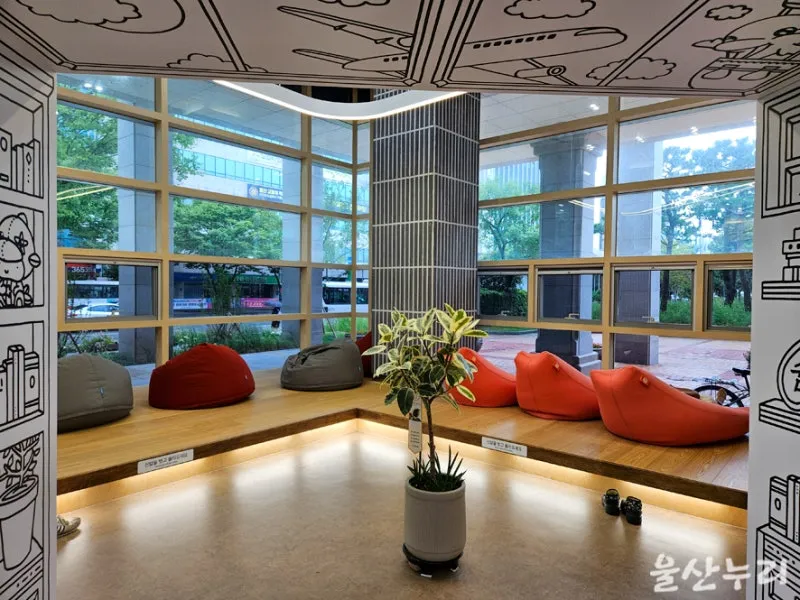 이곳은 예전에 울산시 홍보관이었던 것을 대대적인 공사를 하여 새롭게 책이 있는 공간으로 변신을 하게 되었습니다.