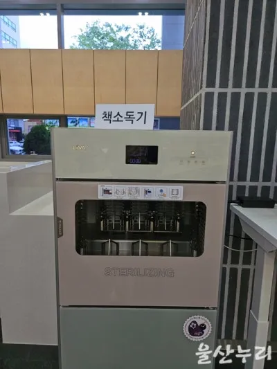 내부에는 책 소독기와 무인대출반납기, 검색대 등이 비치되어 있습니다.