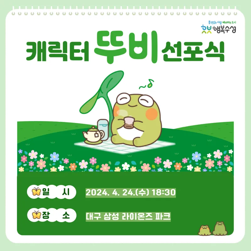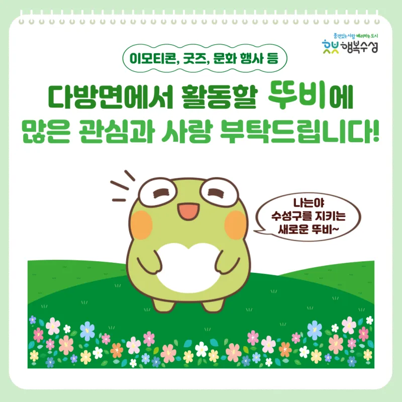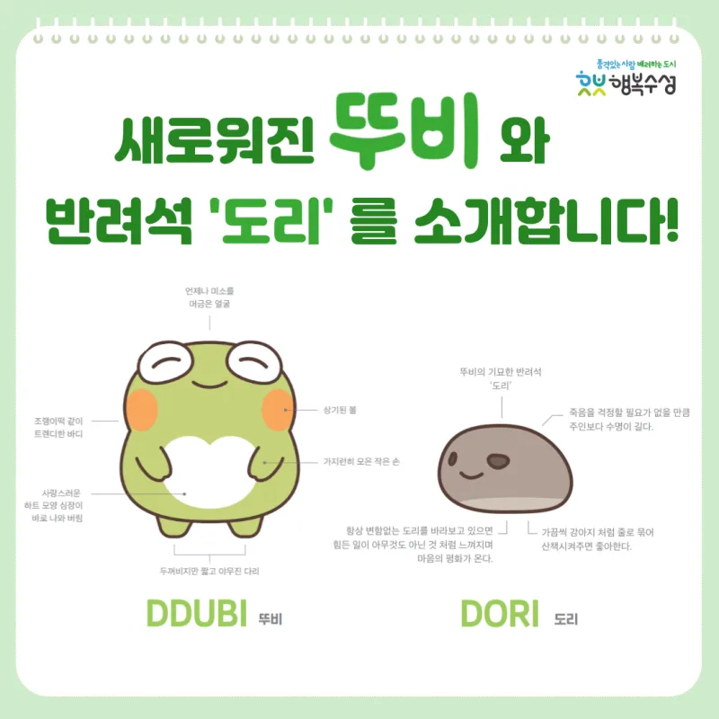 망월지에 사는 수성구 캐릭터 '뚜비'가 새롭게 바뀝니다!