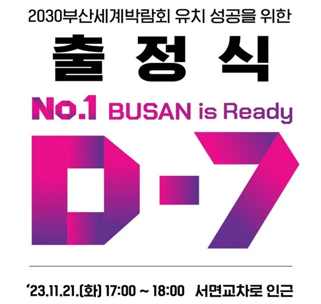 11월 21일 오후 5시부터 부산 서면교차로 일대에서 펼쳐진 '엑스포 개최지 결정 D-7 출정식'에 다녀왔습니다.