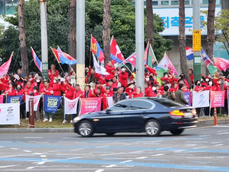 "유치를 위하여 다함께 외쳐라! 2030부산월드엑스포!"