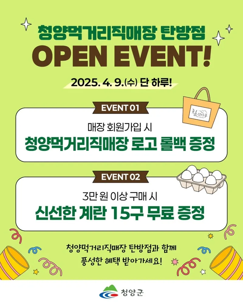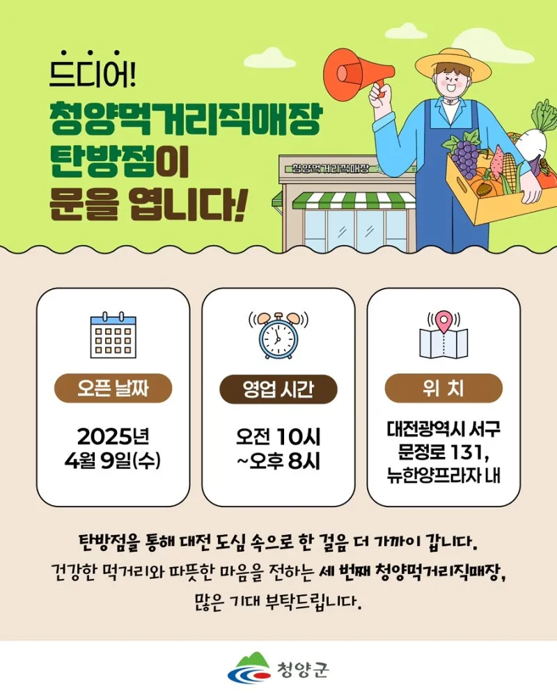 🎉 드디어 청양먹거리직매장 탄방점이 문을 엽니다! 🎉