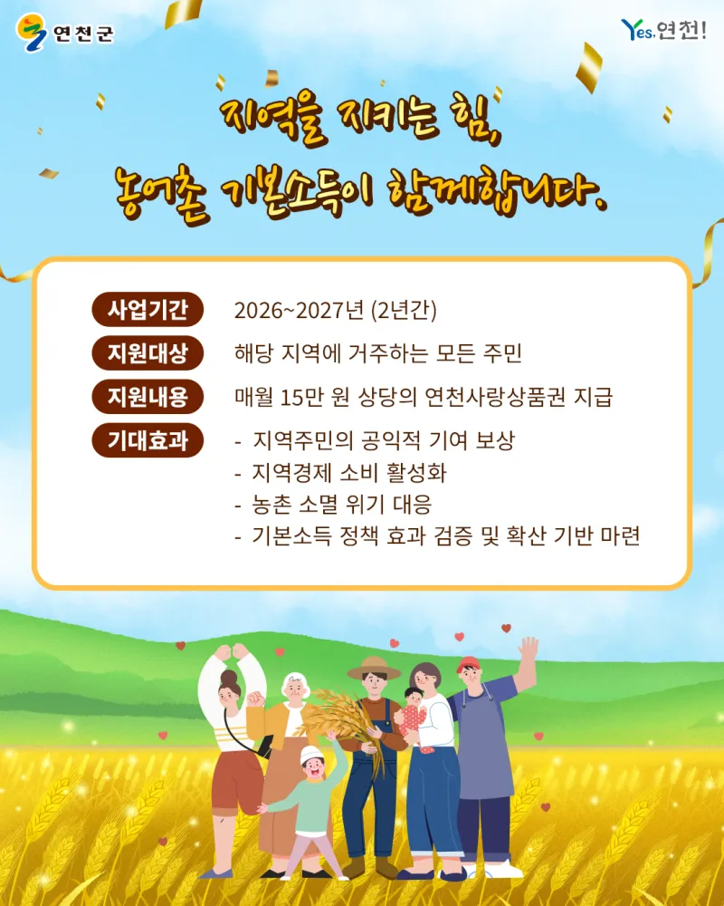 🌾 연천군, 농어촌 기본소득 공모사업 최종 선정