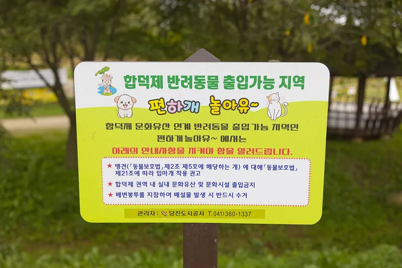 최근 합덕제는 당진시의 우수 정책 중 하나인 '편하개 놀아유' 관광지로 선정된 곳입니다. 반려동물 출입이 가능한 지역이니 산책 매너만 잘 지켜주신다면 사랑하는 반려견과 함께 추억을 남기실 수 있을 거 같습니다.