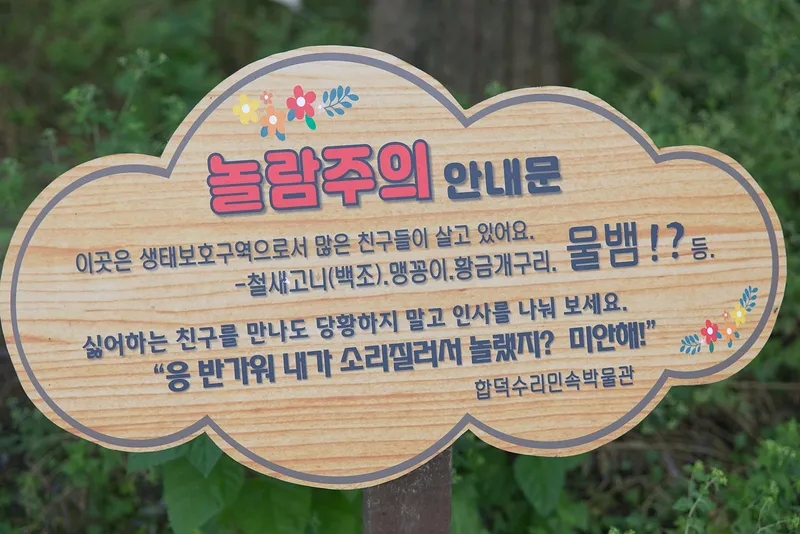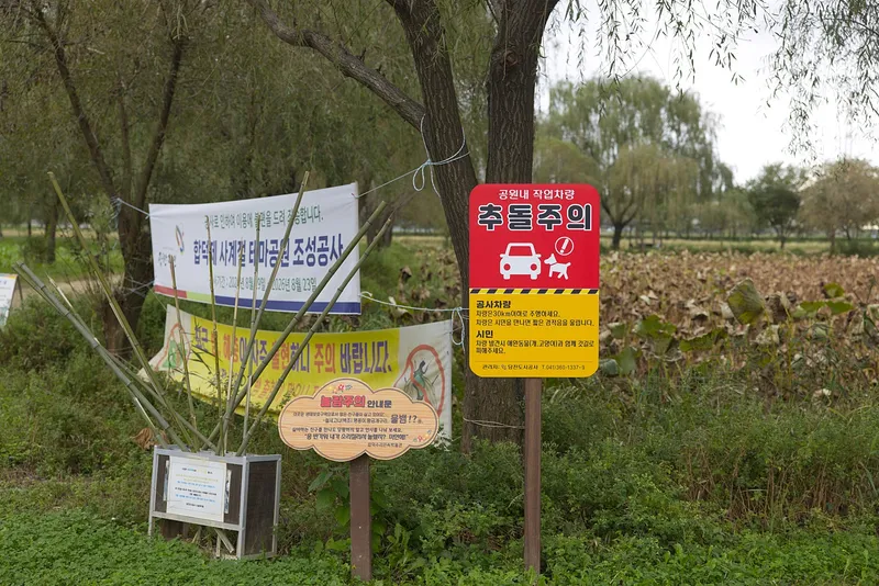 해마다 합덕제를 찾아오는 편이지만, 가끔 이렇게 재미난 사이니지가 추가되는 것을 발견할 수 있습니다. 예를 들어 이렇게 놀람주의 안내문이라는 재밌는 안내문도 있지요.