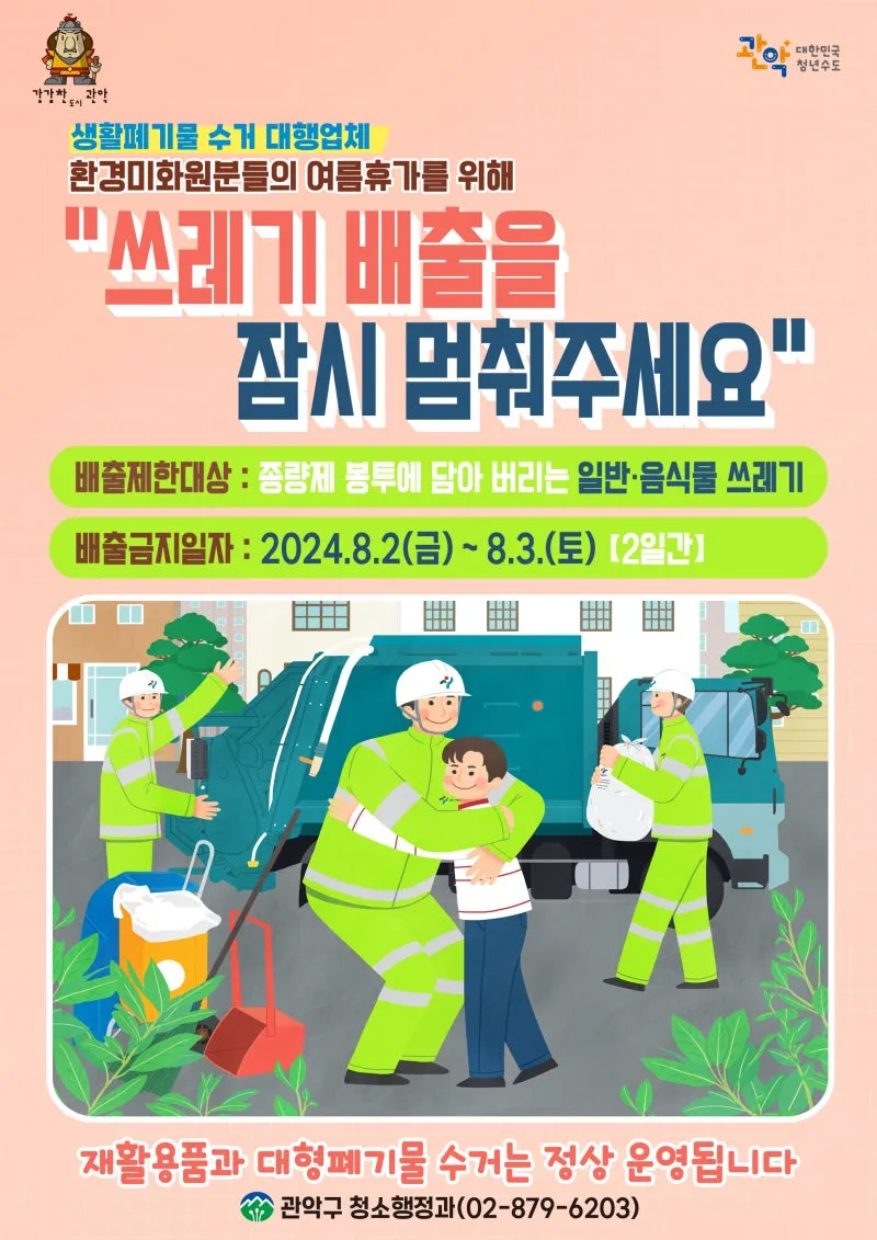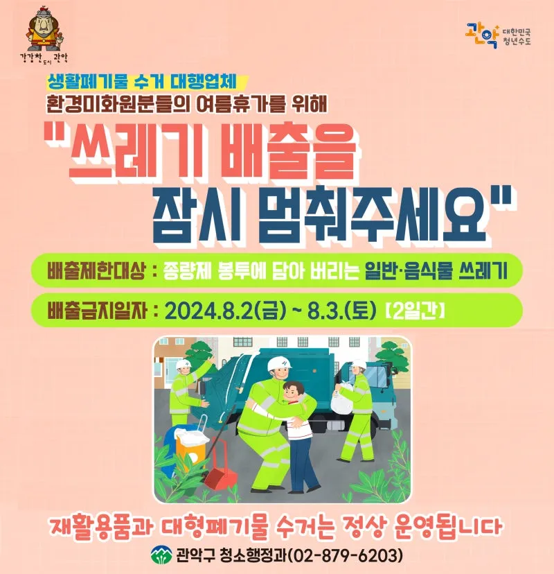 관악구 생활폐기물 수집·운반 대행업체에서 환경미화원 하계휴가를 실시함에 따라