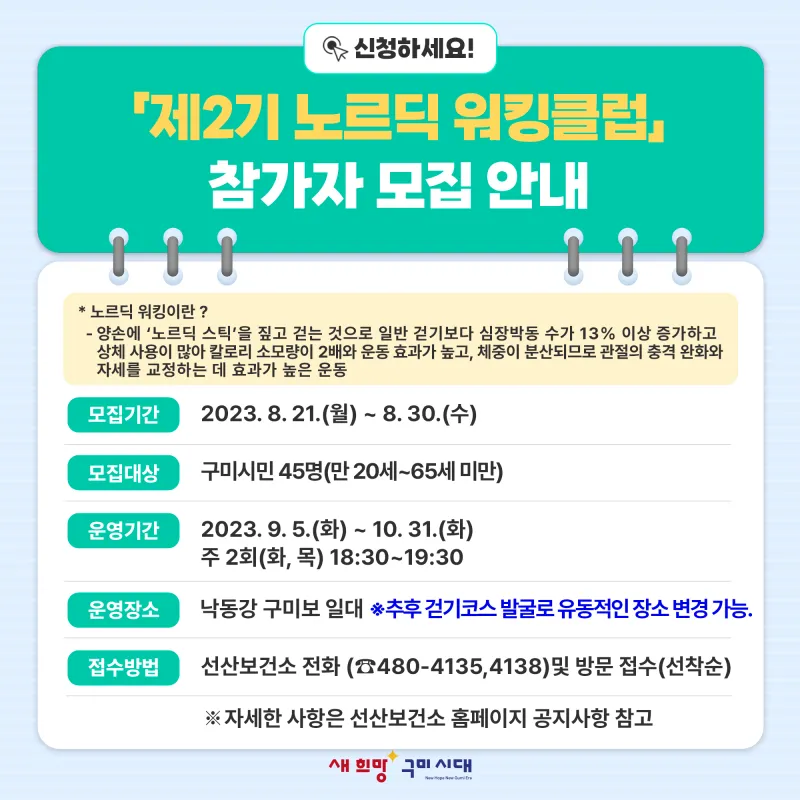 구미시 :: 「제2기 노르딕 워킹클럽」 참가자 모집
