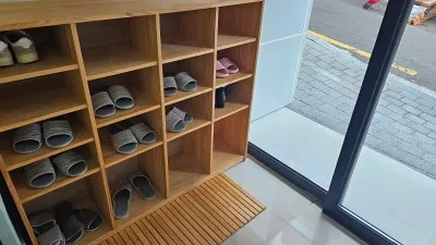 출입문은 자동문으로 살짝 터치하니 열렸고, 안으로 들어갈 때는 실내화를 신고 입장할 수 있었습니다.
