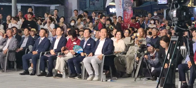 수많은 통영시민, 관광객이 객석에 마련된 자리에 앉아서
