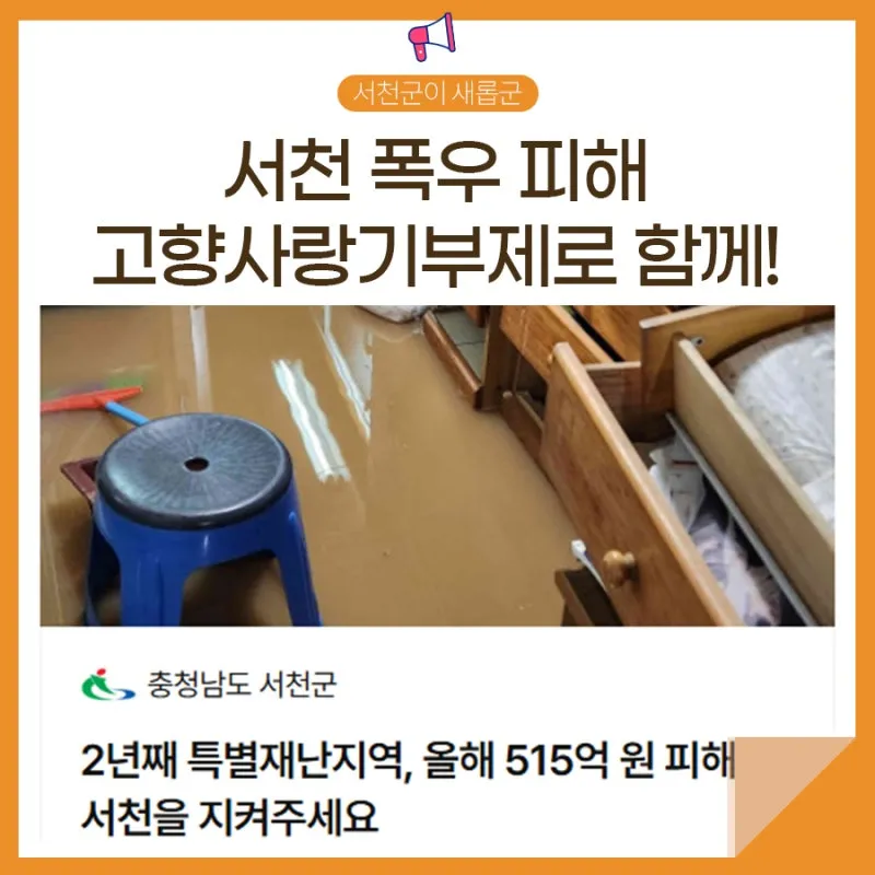 🌧️ 충남 서천군 폭우 피해, 고향사랑기부제로 함께해 주세요