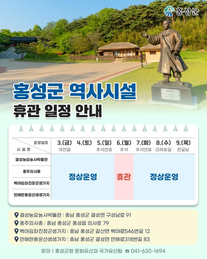 2025 홍성군 역사시설 - 추석 연휴 휴관일정 안내 -