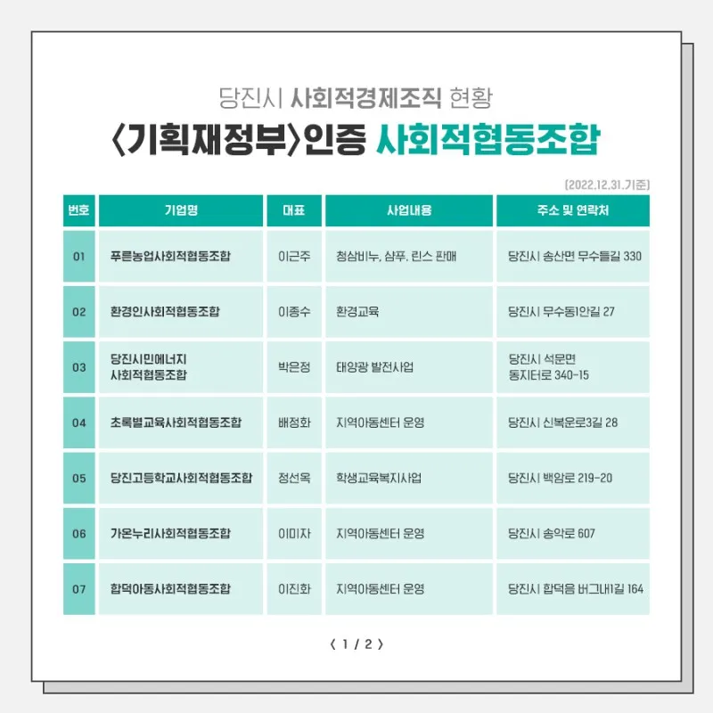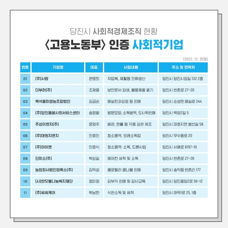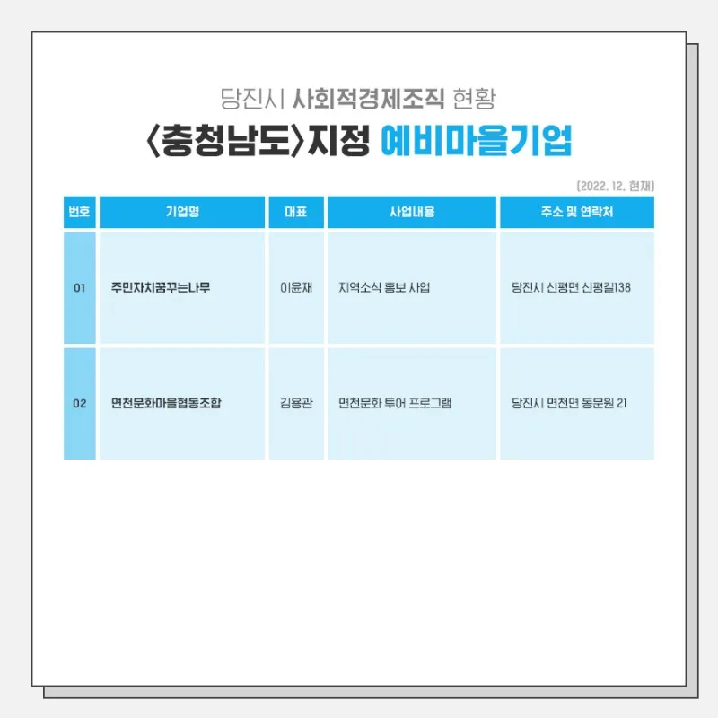 함께 여는 미래! 생동하는 당진, 당진시 사회적경제기업 안내 4탄!