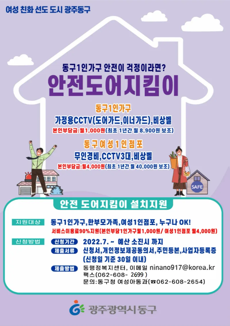 ○ 신청대상 : 광주광역시 동구 1인가구, 한부모가족, 여성1인점포