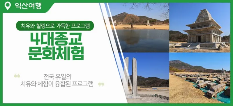 전라북도 익산시는 전국 유일의 치유와 체험이 융합한 '4대 종교 문화체험 다이로움 익산 여행'프로그램을 운영하고 있습니다.
