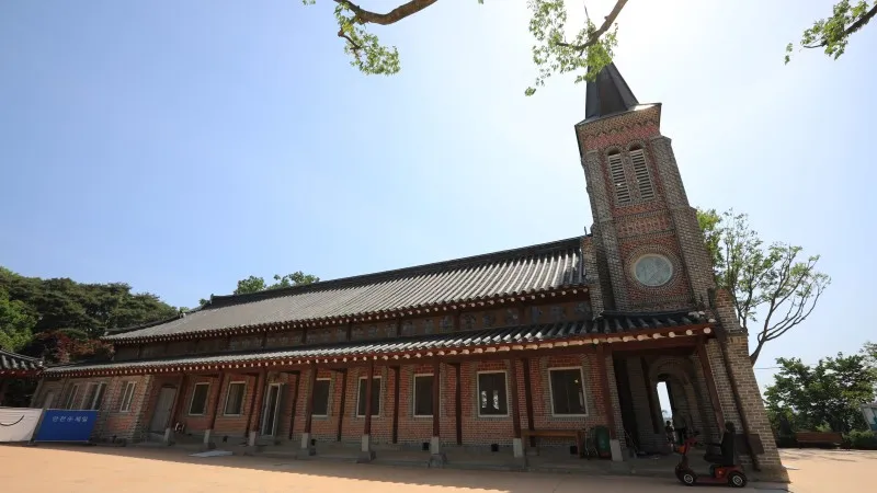 서구식 성당 건축양식과 우리나라 한옥건축양식을 절충했고 일부 중국식 건축양식도 사용한 건물로 김대건 성인이 처음 전도한 곳이어서 한국 천주교회 성지로 지정된 곳인데요, 나바위성당 건물은 사적이기도 합니다.