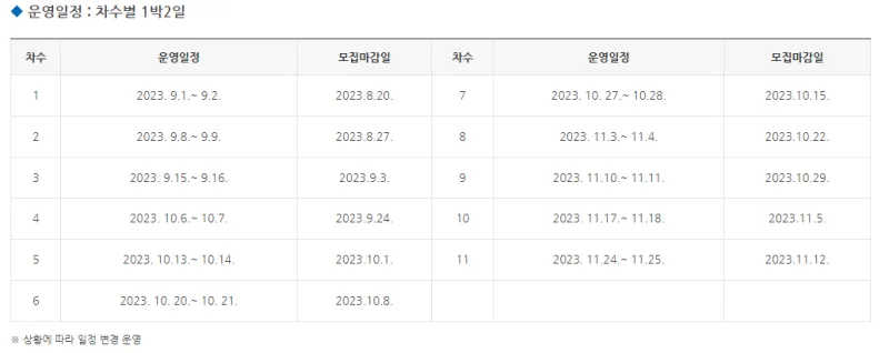 ※ 상황에 따라 코스 및 시간 변경 운영